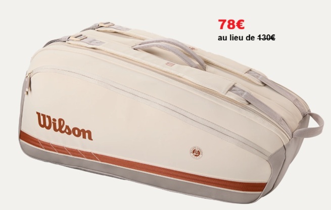 3. Thermobag de Tennis WILSON x ROLAND GARROS 2025 Super Tour 9 Pack. 78€ au lieu de 130€ (ci-dessus)