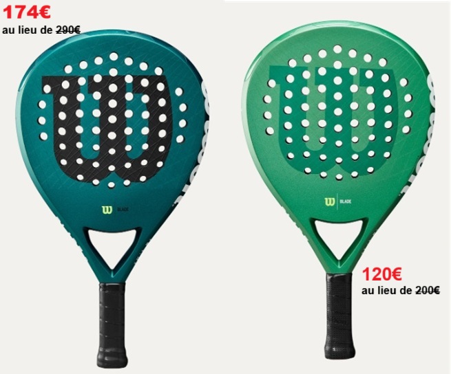 4. Raquette de Padel WILSON Blade Pro V3. 174€ au lieu de 290€ (à gauche). 5. Raquette de Padel WILSON Blade LS V3. 120€ au lieu de 200€ (à droite)
